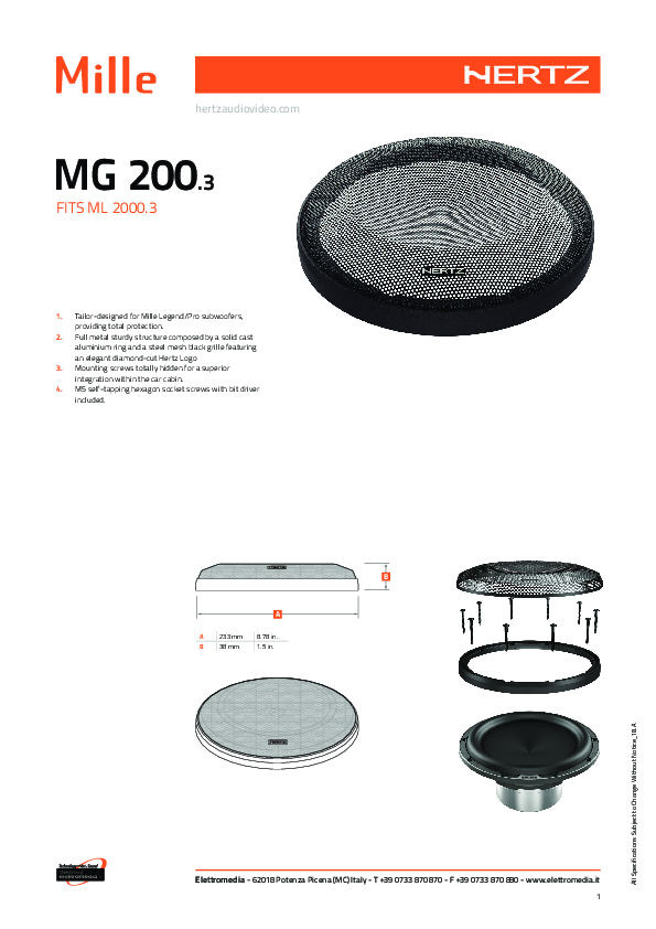 Hertz ML 2000.3 Legend Subwoofer 200mm per utilizzo in cassa della nuova serie Mille