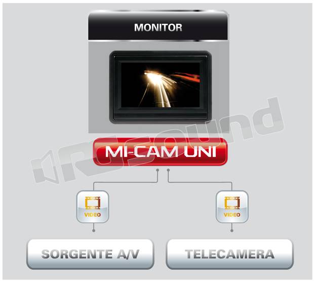Interfaccia analogica universale con ingresso video RCA per la commutazione video da videocamera per retrovisione originale a intrattenimento.