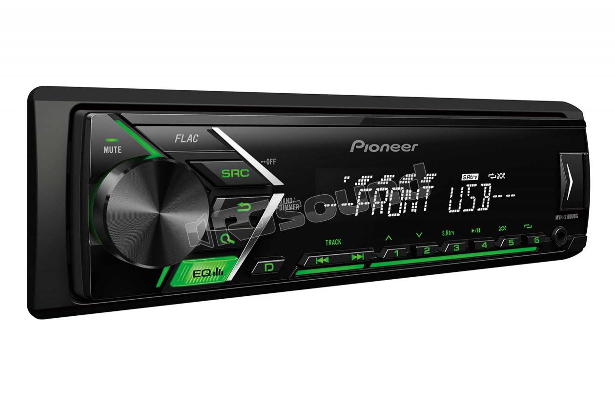 Pioneer MVH-S100UBG stereo auto 1 Din con illuminazione dei tasti verde, sintonizzatore RDS, ingressi USB e Aux-In, riproduzione file FLAC, compatibile Android