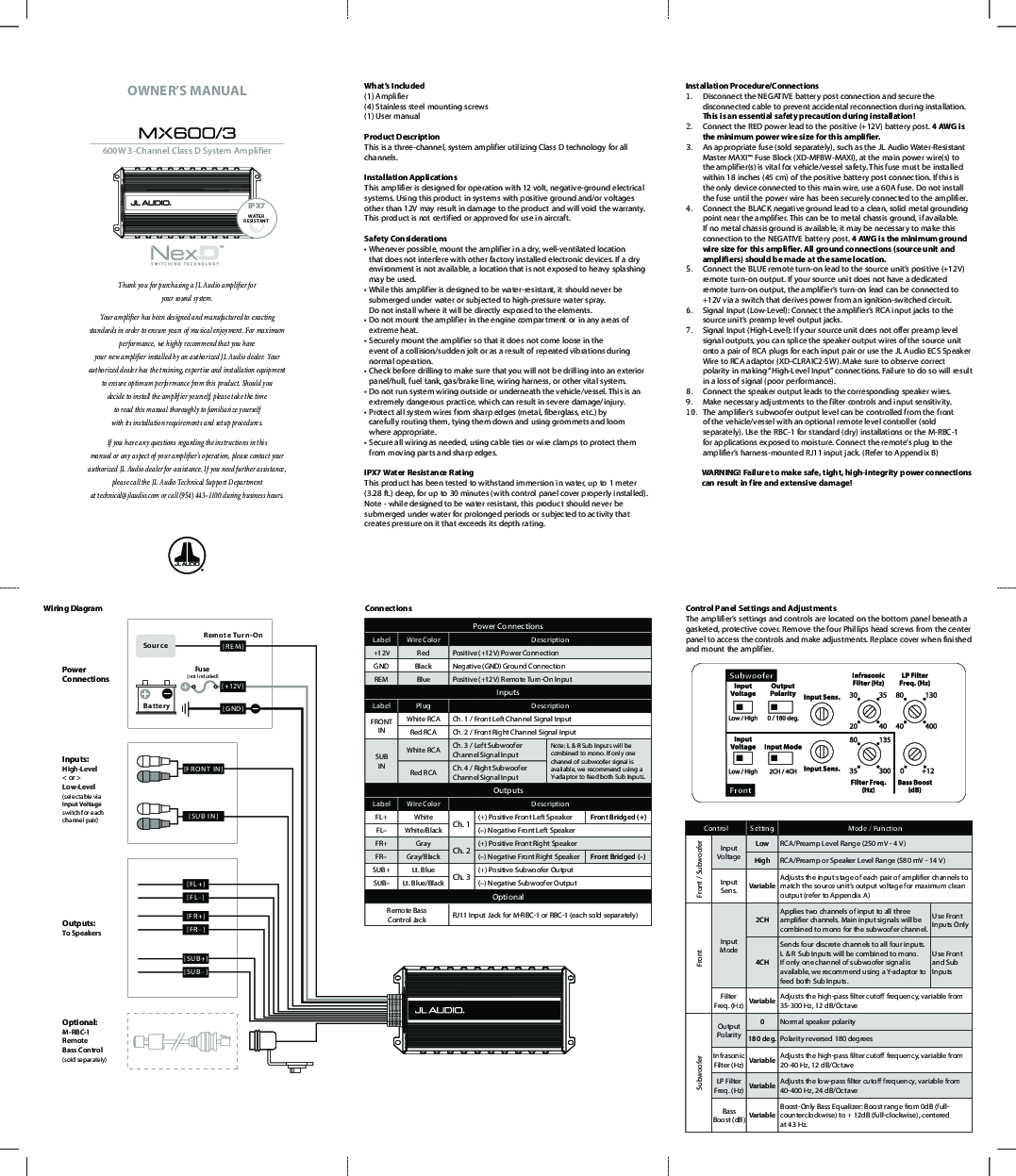 JL Audio MX600/3 caratteristiche tecniche