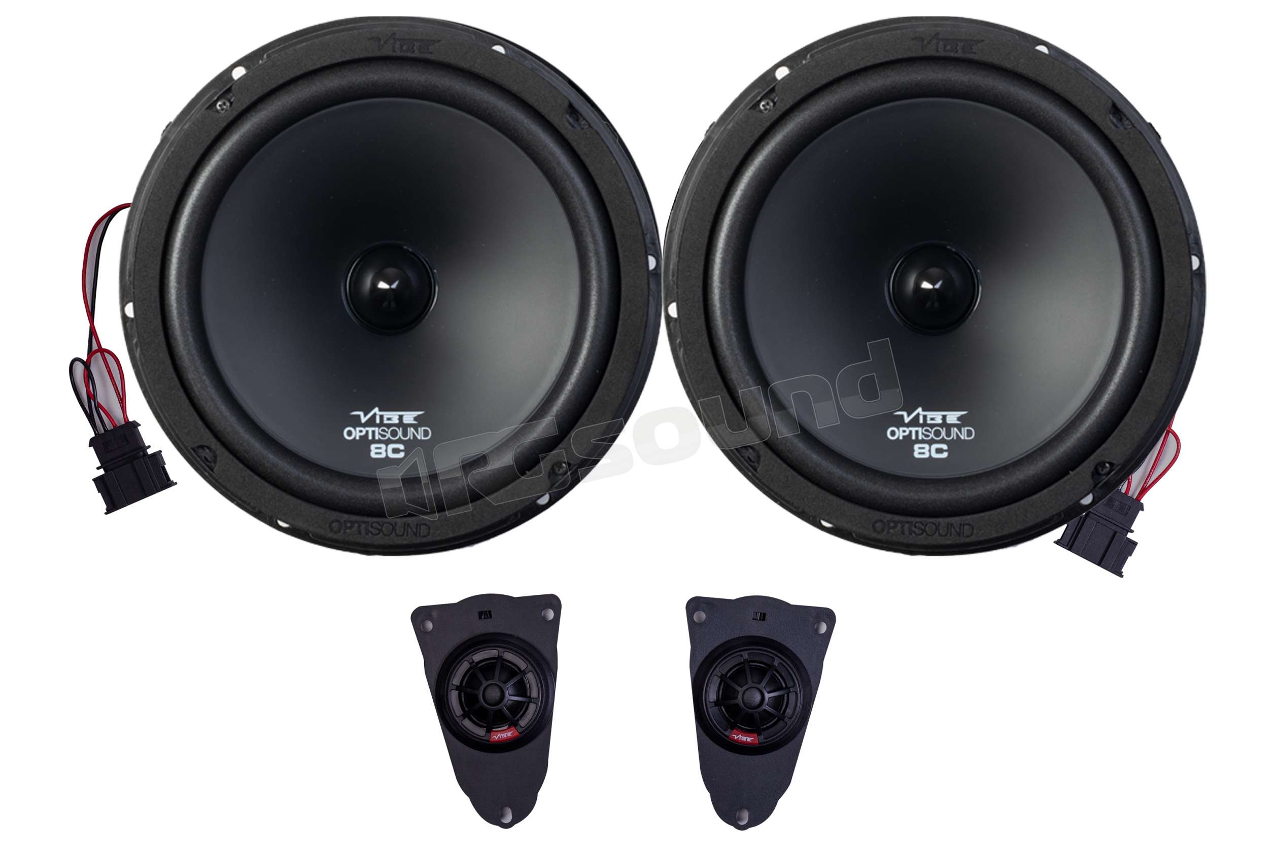 Vibe OPTI8VWT5.1-V0 kit altoparlanti specifico per VW T5.1, composto da coppia di woofer 20cm (8"), coppia di tweeter, staffe adattatrici, cavi adattatori, insonorizzazione. Tutti i componenti inclusi per un montaggio facile e veloce.