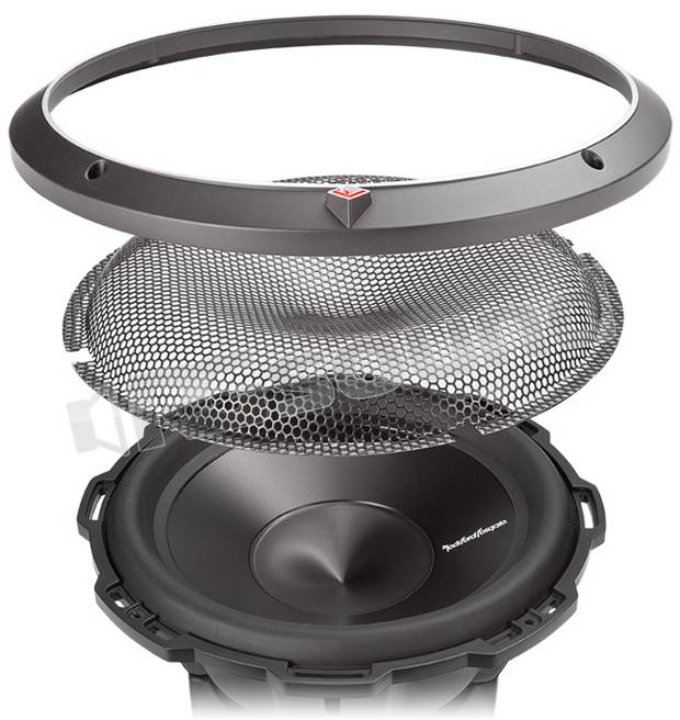 Semplicemente rimuovere l'anello della cornice esistente dal vostro woofer, inserire la griglia e riattaccare l'anello di chiusura.