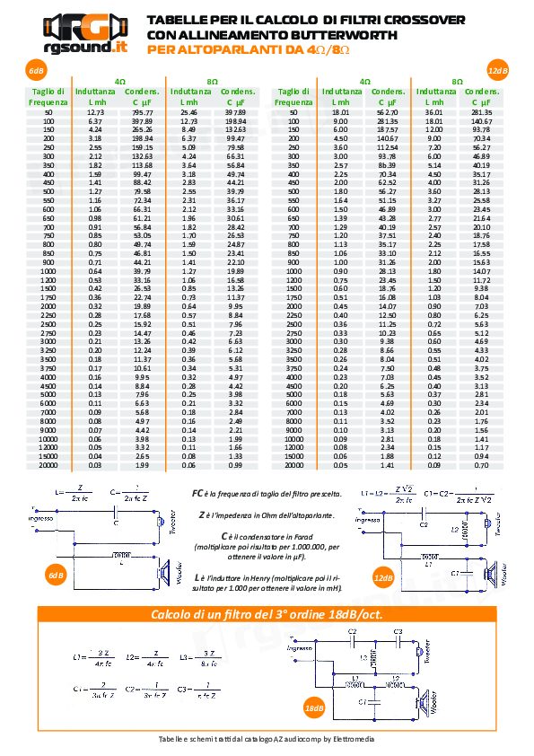 Istruzioni per il calcolo dei crossover con tabella valori nel pdf allegato disponibile in questa pagina.