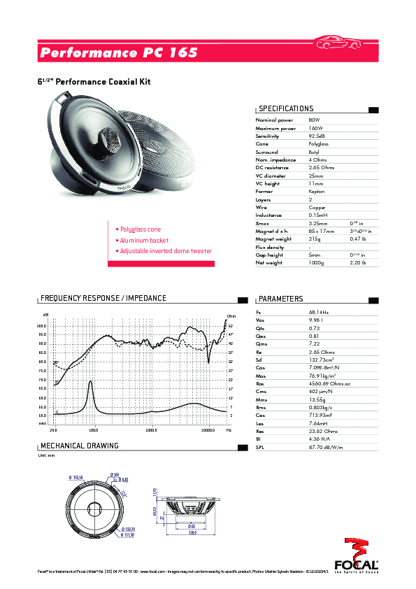 Sistema a 2 vie composto da coppia di coassiale diametro 165mm con tweeter a cono rovesciato in alluminio rotante.