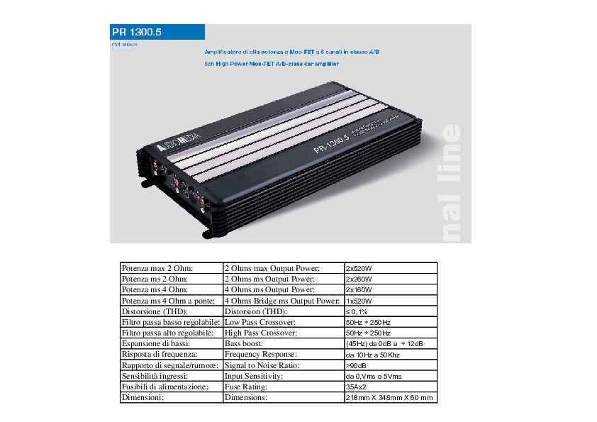 Possibilità di funzionamento stabile a 2 Ohm in stereo e 4 Ohm in mono a ponte.