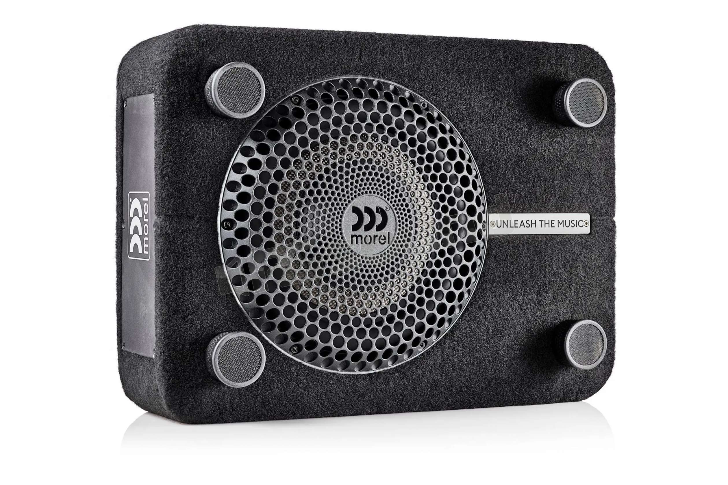 I subwoofer attivi Morel PRIMO PSL8AE e PSL10AE rappresentano il connubio perfetto tra prestazioni di alto livello, praticità ed estetica raffinata. Per molti appassionati, aggiungere bassi profondi ha sempre significato rinunciare alla funzionalità del bagagliaio. Morel risolve questo dilemma offrendo un sistema amplificato pronto all’uso che si mimetizza all’interno del veicolo, pur facendo sentire la propria presenza attraverso un impatto acustico eccezionale. Ogni dettaglio del design trasuda qualità, dal tappeto di alta qualità e grande resistenza alla suggestiva griglia in alluminio pressofuso con l'iconico motivo Lotus di Morel: un design che offre sia protezione strutturale che un look di lusso caratteristico.