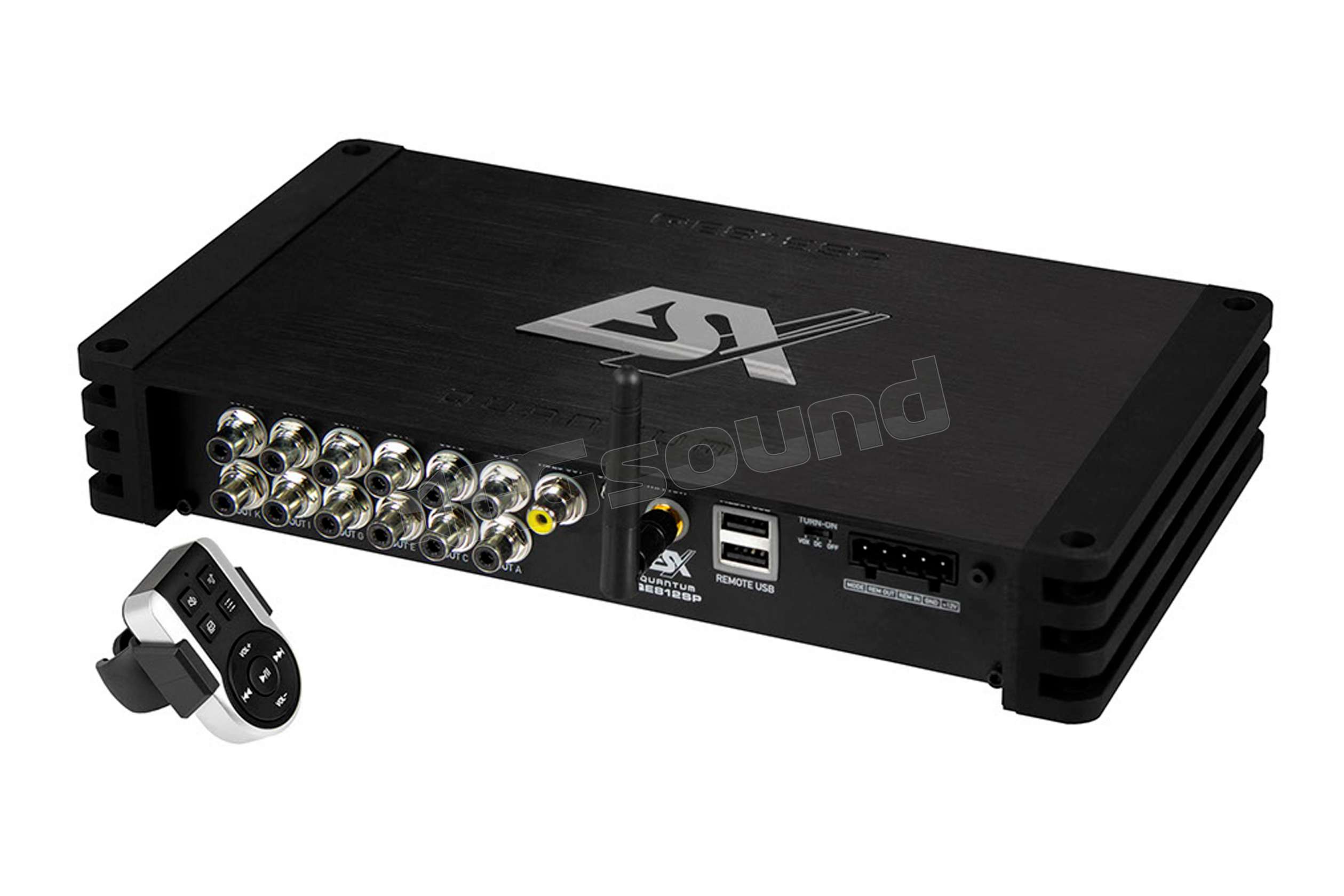 Il lettore viene controllato tramite il telecomando wireless RC-BT in dotazione o, in alternativa, tramite il telecomando via cavo RC-QE di alta qualità, disponibile come optional, dotato di un ampio display LCD a colori. Il lettore può anche essere collegato a un monitor o a una radio con ingresso video tramite l'uscita video esistente. È inoltre possibile controllare l'intero DSP via Bluetooth utilizzando un tablet o uno smartphone grazie all'applicazione ESX Toolkit.