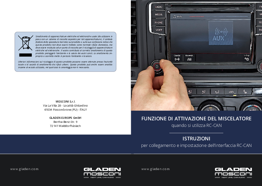 - Selezionando AUX-IN come sorgente nel menu della radio OEM, il RC-CAN attiverà l’ingresso digitale del DSP