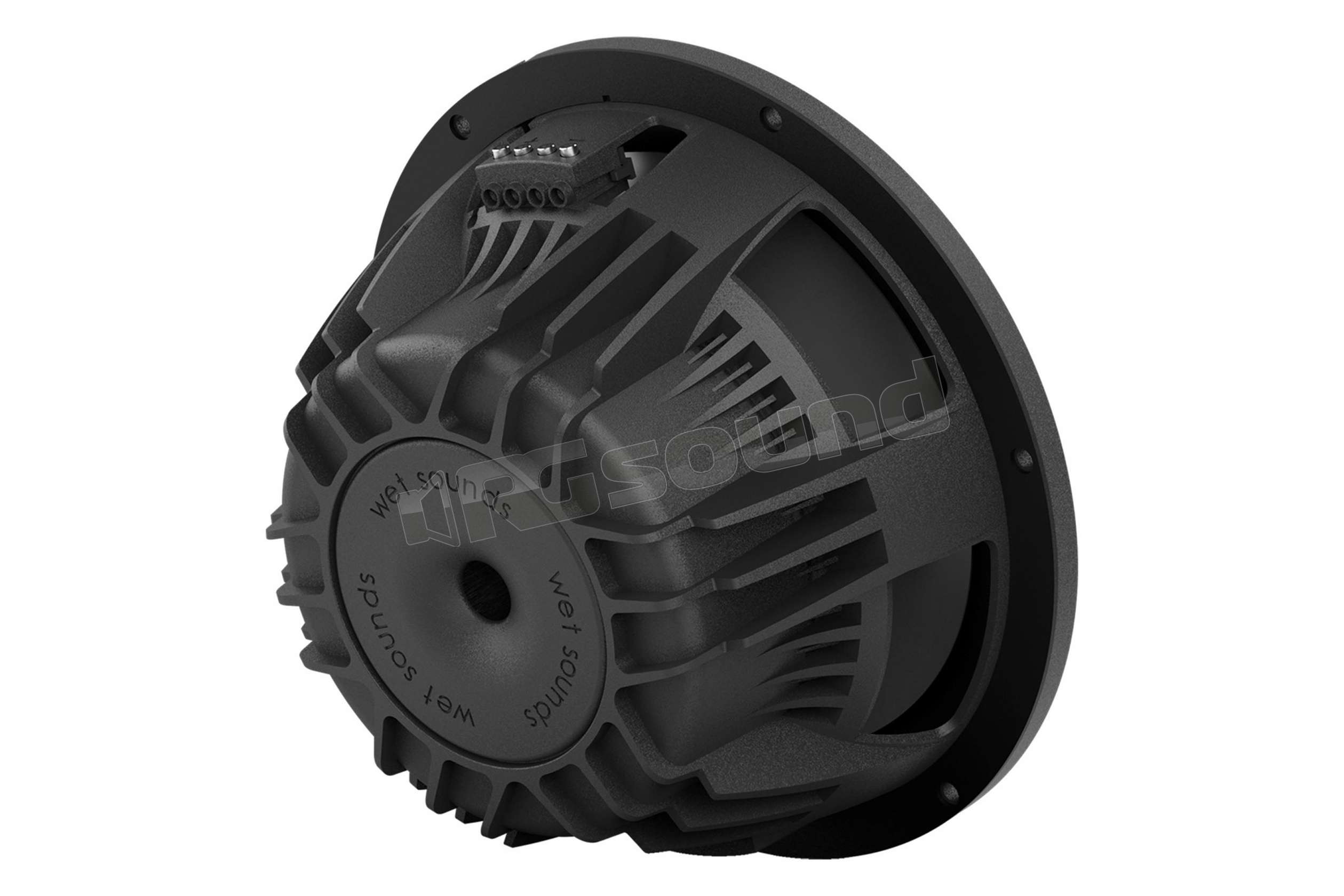 - Spider in gomma Santoprene™ – Molto più resistente all’acqua e agli sbalzi di temperatura rispetto allo spider in cotone trattato tradizionalmente utilizzato dalla maggior parte degli altoparlanti e dei subwoofer marini.