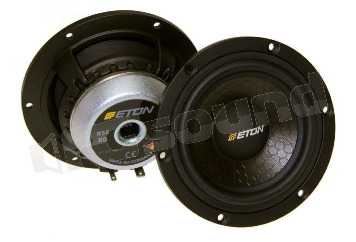 ETON RSE 80 coppia di midrange da 80 mm cono sandwich PSP (carta trattata / Foam). Adatto ad ogni tipo di applicazione e timbricamente coerente per trasformare il sistema RSE 160 in un sistema a 3 vie di alto livelo.
