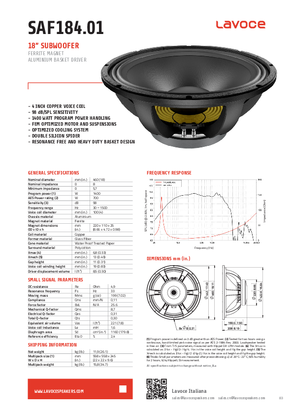 LaVoce SAF184.01 Subwoofer da 18"/460mm