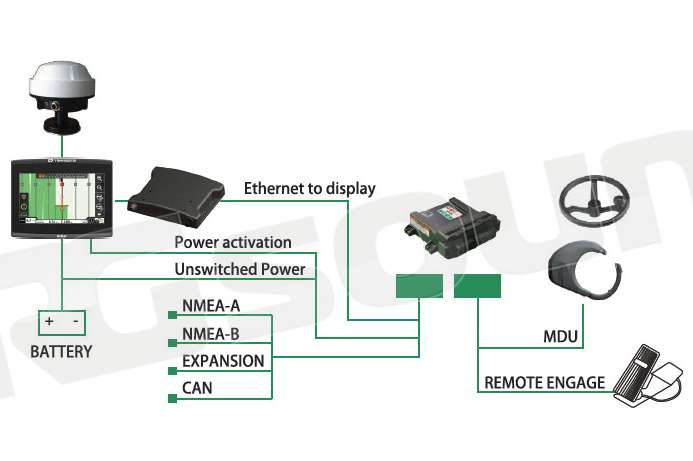 Che cos'è il sistema di guida automatica Farmnavigator (Autosteering System)? Questo è un sistema per la sterzata assistita, che aiuta a seguire con grande precisione le linee guida impostate sul navigatore G7 Farmnavigator.