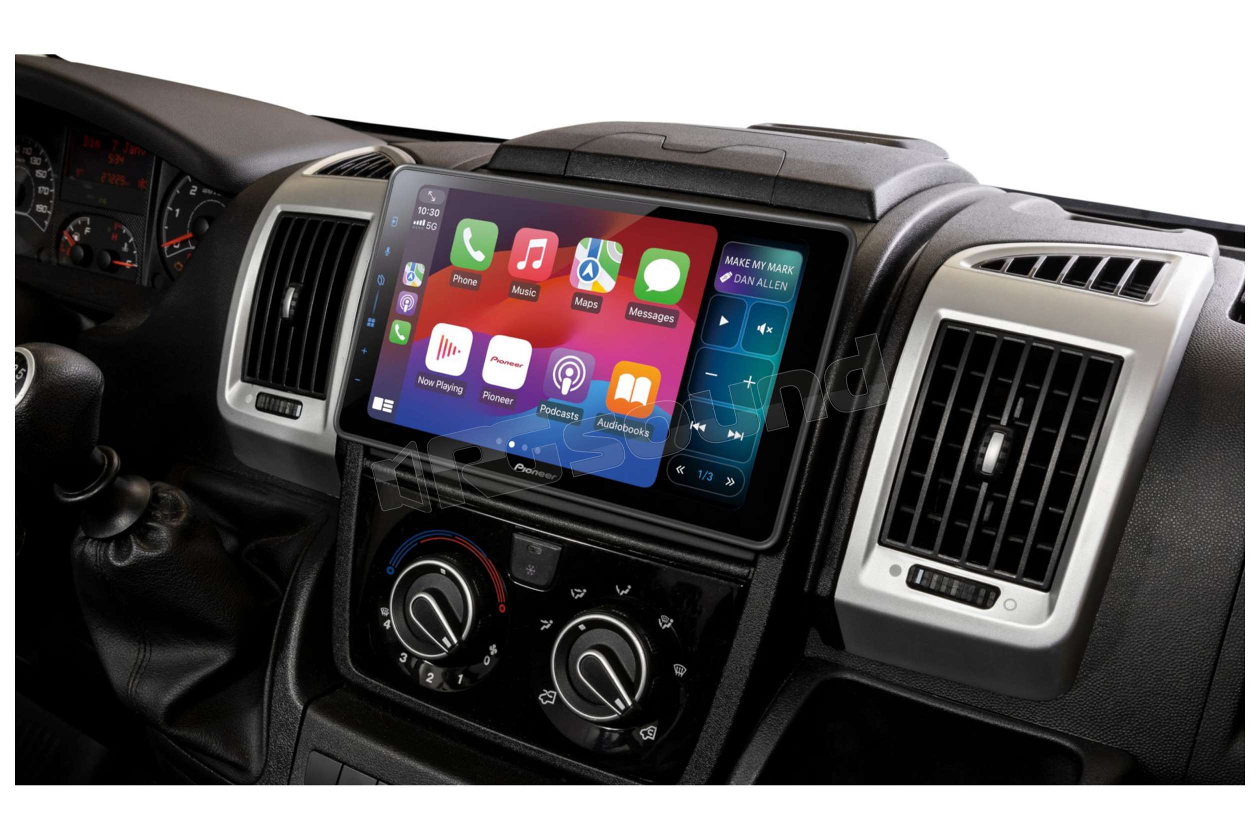 Modalità schermo diviso Pioneer, per visualizzare e controllare funzioni specifiche su una parte adiacente dello schermo ridimensionando dinamicamente l'interfaccia utente di Apple CarPlay.