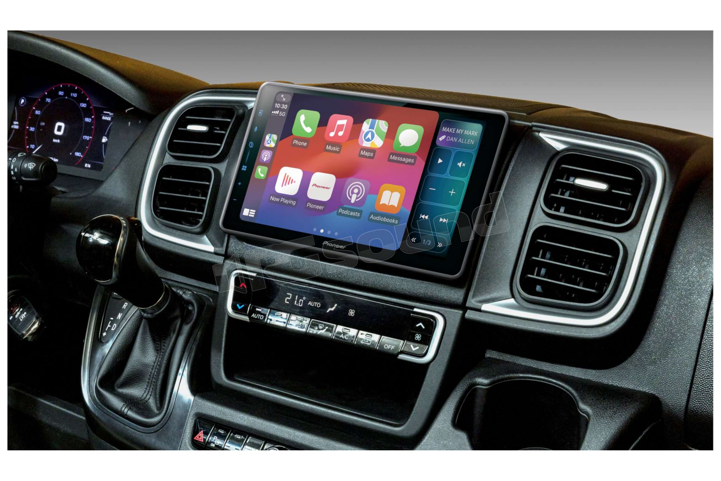Modalità schermo diviso Pioneer, per visualizzare e controllare funzioni specifiche su una parte adiacente dello schermo ridimensionando dinamicamente l'interfaccia utente di Apple CarPlay.