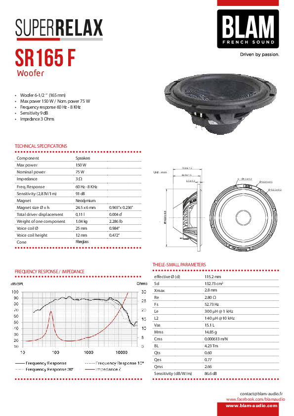 Questo sistema a due vie è progettato per offrire una qualità audio eccezionale, soddisfacendo le aspettative anche dell'audiofilo più esigente. Con una potenza massima di 150 W e una potenza nominale di 75 W, risposta in frequenza da 60 Hz a 25 kHz, impedenza di 3 Ω e sensibilità di 93 dB, garantisce prestazioni acustiche ricche e dettagliate. Il kit include woofer da 165 mm dotati di un cestello composito rinforzato con fibra di vetro, una membrana in polpa di cellulosa trattata per una riproduzione fedele del suono e una sospensione perimetrale in butile per una durata ottimale.