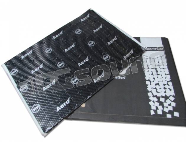 Materiale smorzante e antivibrazionale multistrato composto da: strato di polimero a base di gomma butilica, bitume mastice e superficie esterna di alluminio.