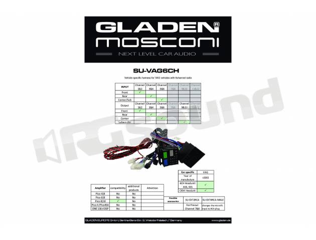 Gladen SU-VAG6CH cablaggio specifico per l'installazione di un amplificatore DSP PICO 8|10 su vetture del gruppo Volkswagen & Audi con radio a 6 canali