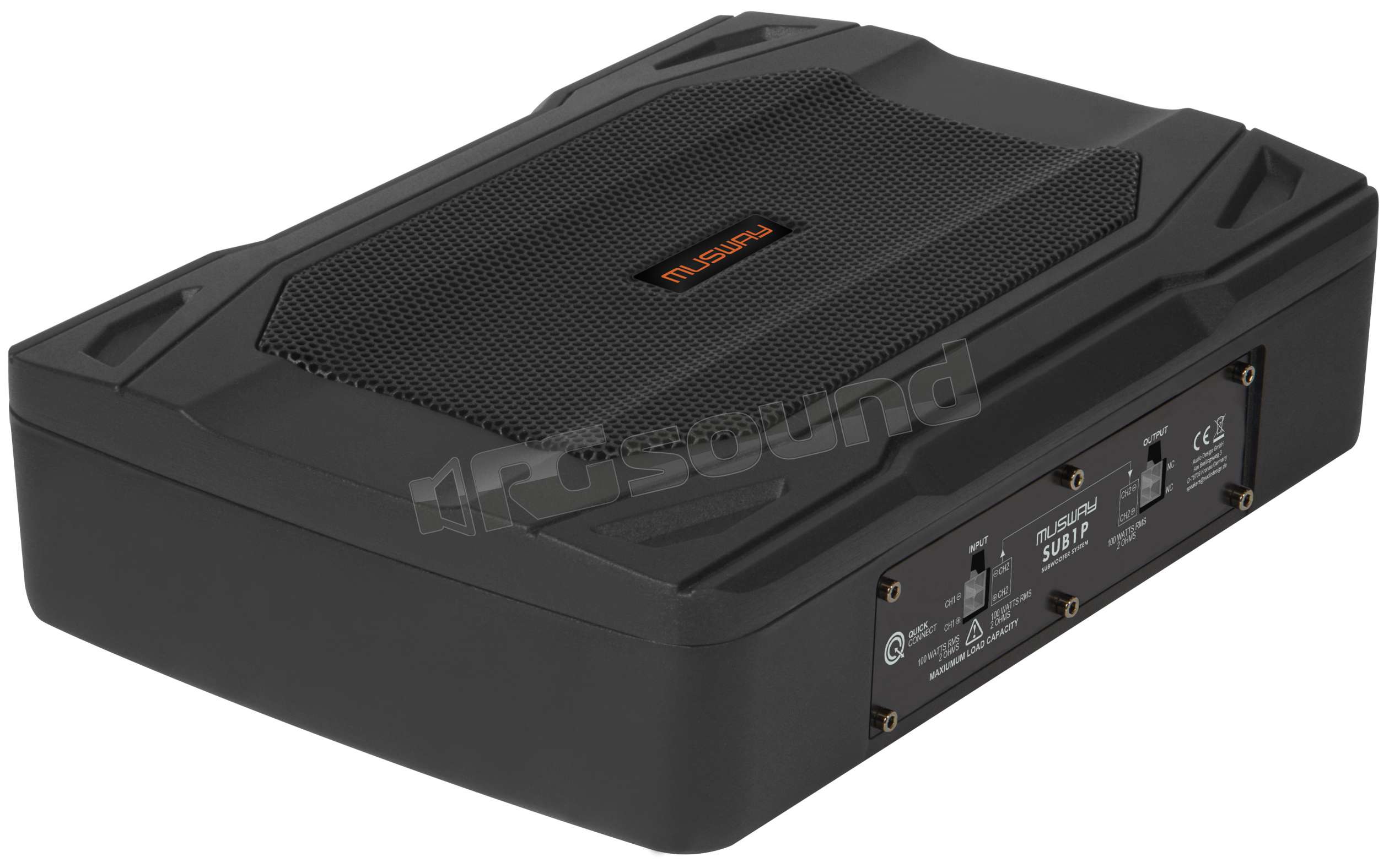 ll subwoofer compatto non ha un amplificatore integrato ed è progettato per l'alimentazione esterna tramite amplificatori separati. Il suo scopo è facilmente spiegabile: quando si installa un sistema audio con un amplificatore multicanale, spesso sono disponibili uno o anche due canali aggiuntivi. Questi sono ideali per alimentare piccoli subwoofer esterni. Uno o due subwoofer SUB1P possono essere collegati direttamente a queste uscite. Questa funzionalità è particolarmente utile con i modelli Musway M5 e M6, poiché possono essere facilmente collegati tramite il cavo Quick Connect incluso. In alternativa, anche i piccoli amplificatori mono sono perfettamente adatti per il funzionamento delle versioni passive SUB1P. La caratteristica principale del SUB1P è l'uscita integrata per un secondo SUB1P passivo. Un secondo subwoofer può essere collegato a questa uscita tramite il cavo Quick Connect da 2 metri incluso e posizionato, ad esempio, sotto il sedile del passeggero. La differenza nella risposta dei bassi con un secondo subwoofer è chiaramente udibile e percepibile.