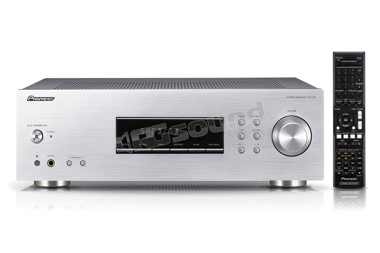 SX-20-S sintoamplificatore stereo da 200W con sintonizzatore FM/AM e ingresso Phono MM (colore argento).
