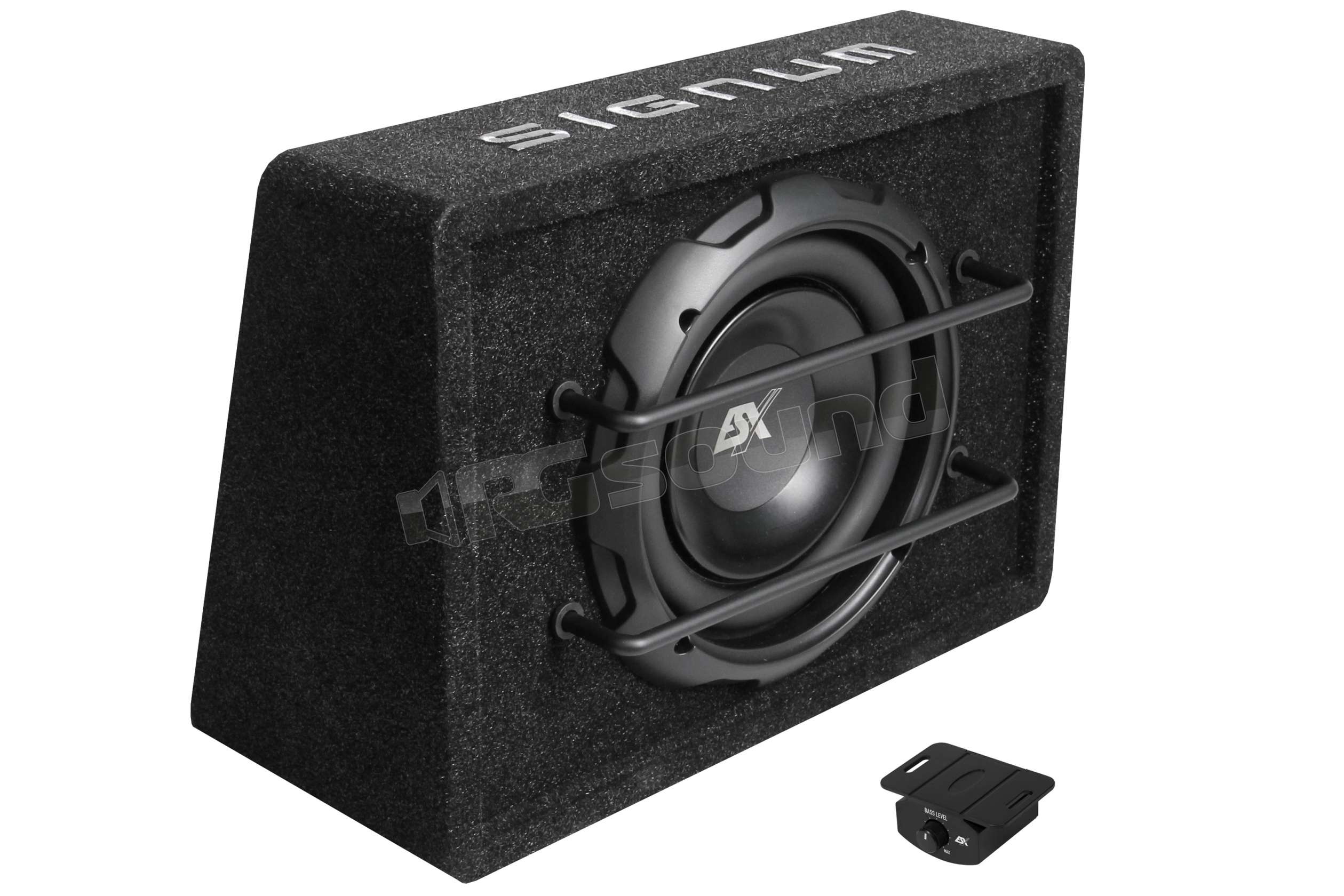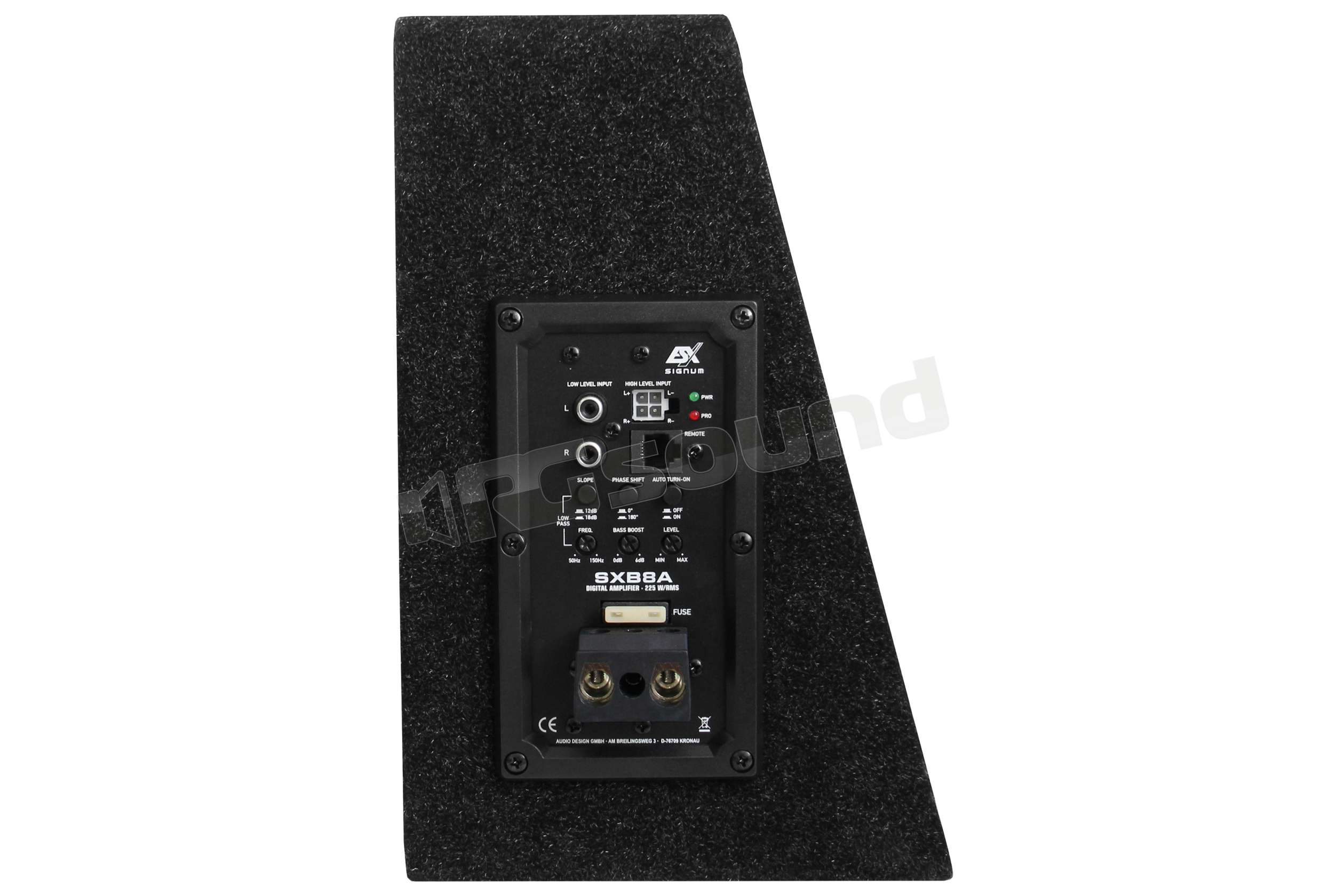 Questa serie di caratteristiche consente una perfetta integrazione e regolazione del suono praticamente in qualsiasi veicolo. È incluso anche un telecomando per i bassi per un comodo controllo del livello dal sedile del conducente. La spina di alimentazione rimovibile e a prova di cortocircuito per il collegamento elettrico è particolarmente funzionale: consente di rimuovere l'altoparlante in un attimo se necessario – ideale se lo spazio nel bagagliaio è temporaneamente richiesto per qualcos'altro. Basta scollegare il connettore, senza bisogno di attrezzi o cavi. Dotato di un woofer da 8 pollici (20 cm) con cono in alluminio e di un modulo FORCE2 da 225 watt RMS, l'SXB8A combina prestazioni impressionanti con dimensioni compatte di soli 38,5 x 28 x 18/11 cm.