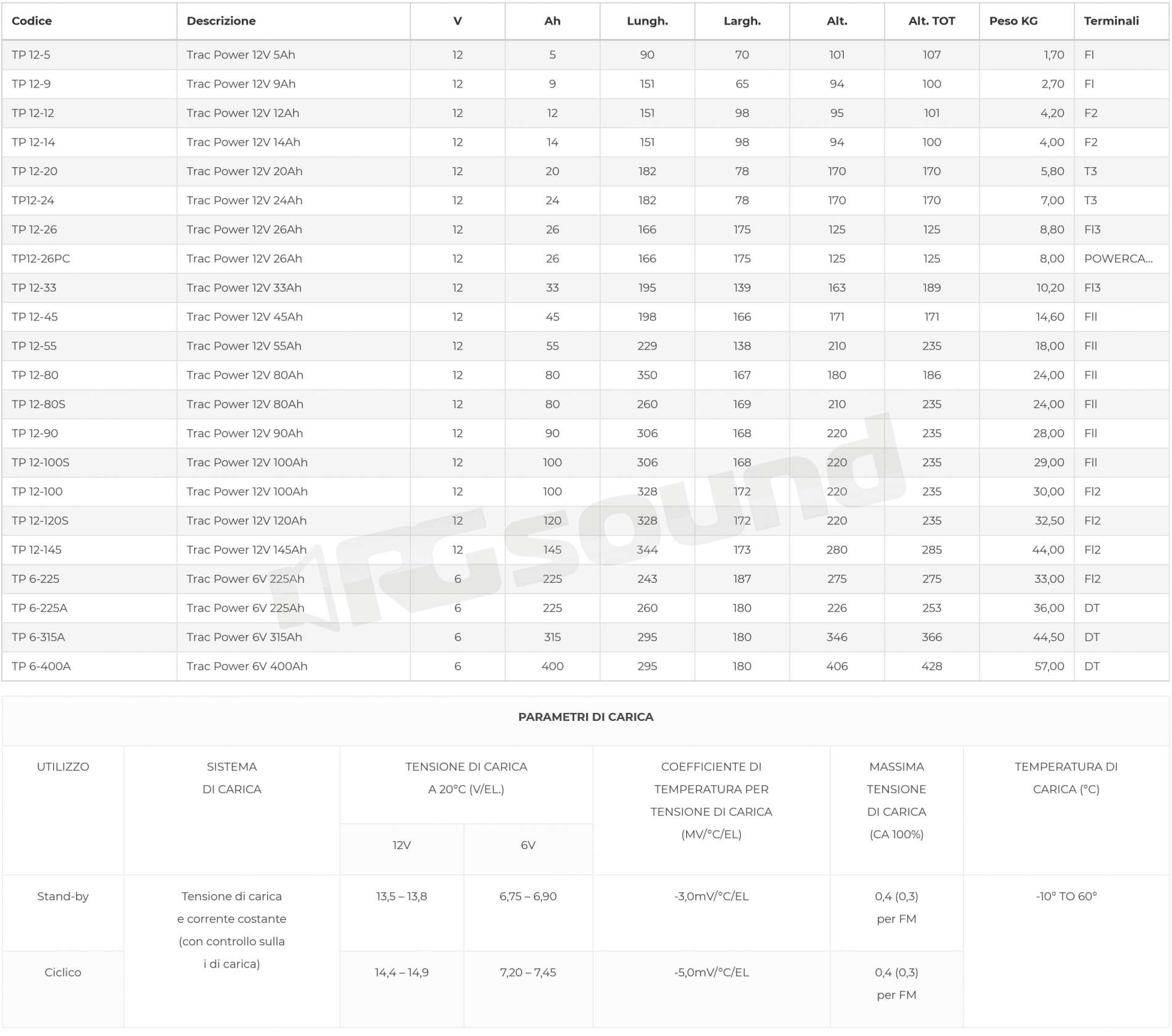 NDS TP12-60B TRACPOWER batteria trazione leggera AGM (12V - 60Ah) per uso Deep Cycles.