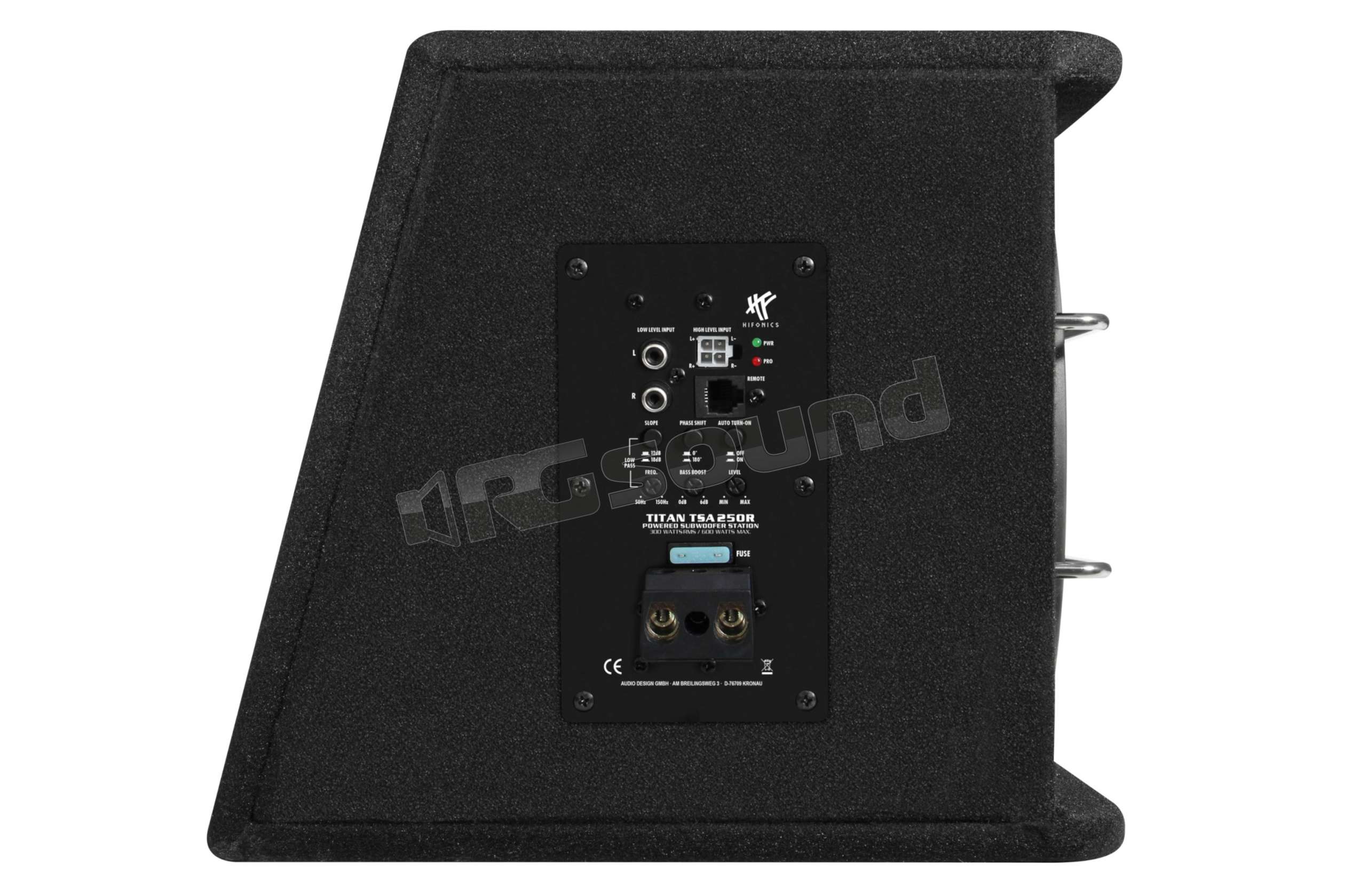 Con il nuovo TSA250R, HiFonics, specialista dei bassi, amplia la sua popolare serie TITAN con un subwoofer singolo più compatto dotato di un modulo amplificatore integrato in classe D. Tecnicamente molto simile al più grande TSA300R, questo modello è destinato agli utenti che cercano prestazioni potenti dei bassi in un ingombro ridotto. La sua forma quasi quadrata con il retro smussato consente un'integrazione particolarmente flessibile nel bagagliaio, ideale per i veicoli con sedili posteriori ribaltabili separatamente. Ciò consente di preservare parte dello spazio di carico senza sacrificare la ricchezza dei bassi. Per la massima praticità nell'uso quotidiano, il pratico connettore di alimentazione a sgancio rapido da 12 volt consente di scollegare in modo sicuro il subwoofer dall'impianto elettrico del veicolo e di rimuoverlo completamente in pochi semplici passaggi.