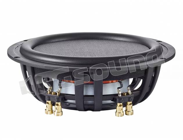 Il subwoofer PS104D Ultimo Powerslim ha una profondità di montaggio 3,1" (78 mm). Questo è stato possibile grazie allo sviluppo del telaio in alluminio pressofuso Uniflow, dell'esclusiva sospensione Progressive Field Symmetry (PFS), della fibra di carbonio HexaCore e del cono a pistoni piatti in alluminio a nido d'ape.