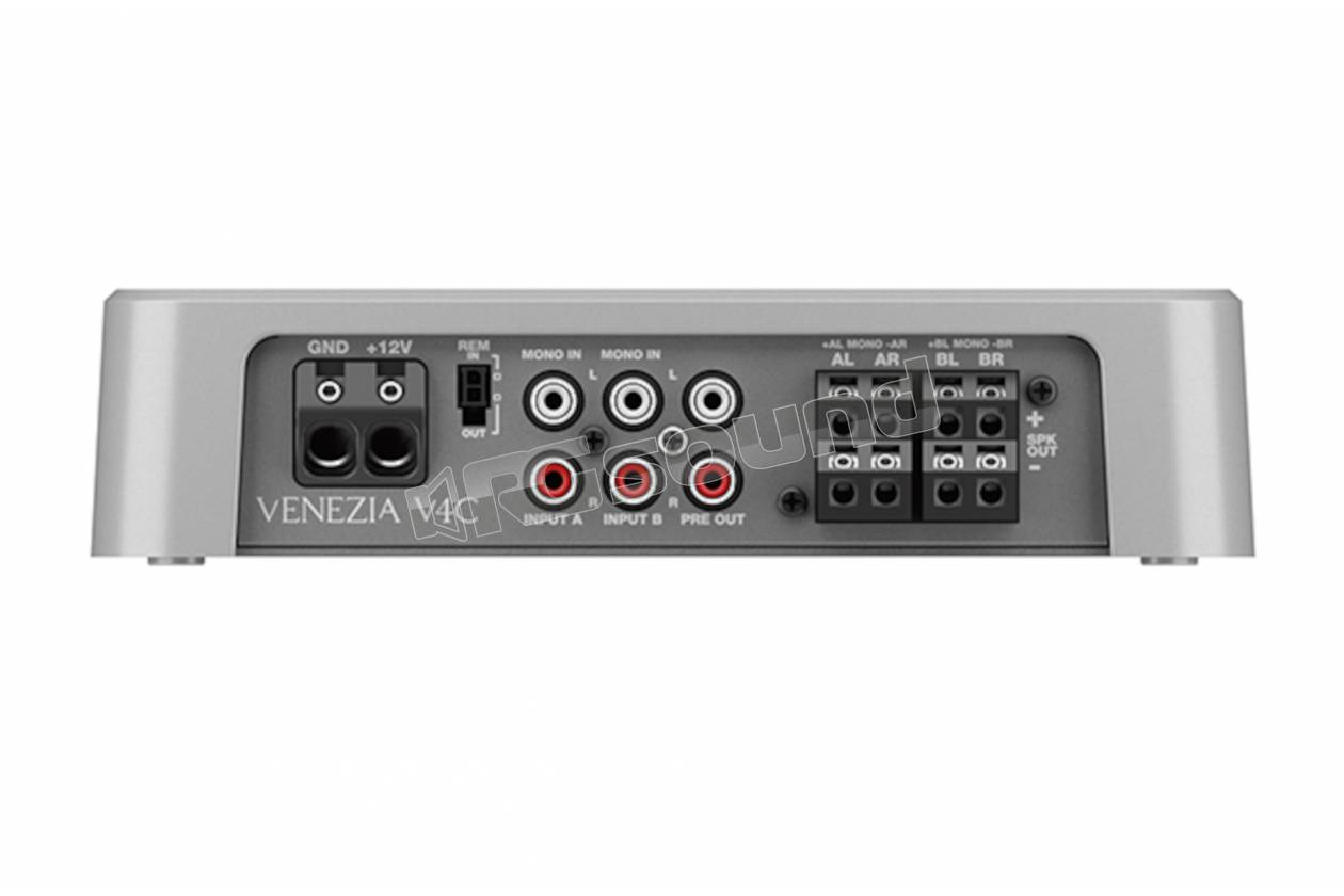 L'amplificatore marino compatto Venezia è caratterizzato da un rapporto potenza/dimensioni ottimizzato con 110 W x 4 (4Ω) e 380 W x 2 (4Ω).
