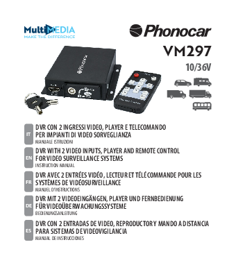 Phonocar VM297 DVR con 2 ingressi video, Player e telecomando per impianti di video sorveglianza.