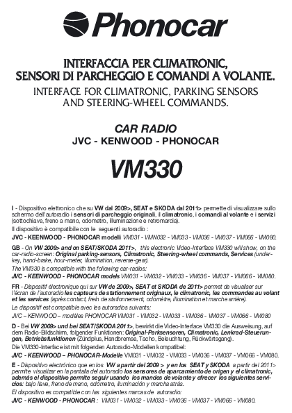 Dispositivo multifunzione che fornisce i Comandi al Volante, i Servizi CAN-BUS. Collegato all’ingresso retrocamera permette la visualizzazione sullo schermo del Climatronic e dei Sensori di Parcheggio