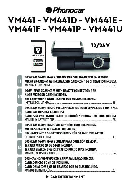 Phonocar VM441 Dashcam con funzione DVR avanzata, 4G/WI-FI/GPS con APP
