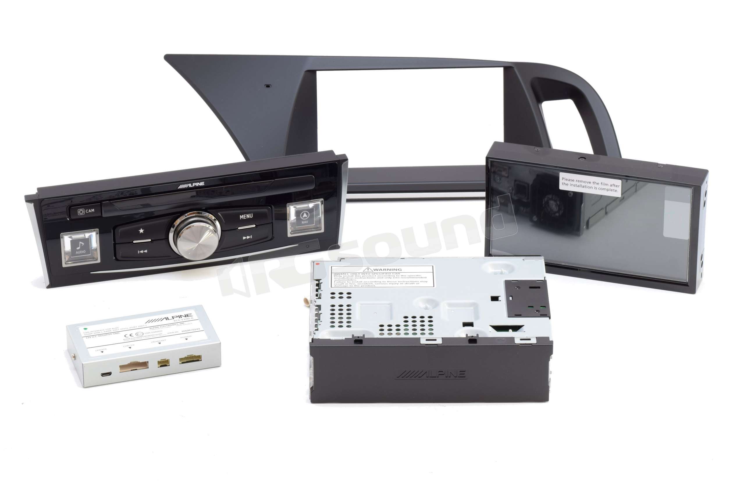 Alpine X701D-A sorgente multimediale mechaless (lettore CD/DVD esterno DVE-5300X venduto separatamente) dedicata ai modelli Audi A4, A5 ed è costituita da due unità distinte, un'unità principale che sostituisce l'equivalente di serie in plancia ed un monitor da 7" con controllo touch screen che va a sostituire la sorgente originale Chorus, Concert, Symphony, nella parte alta della plancia.