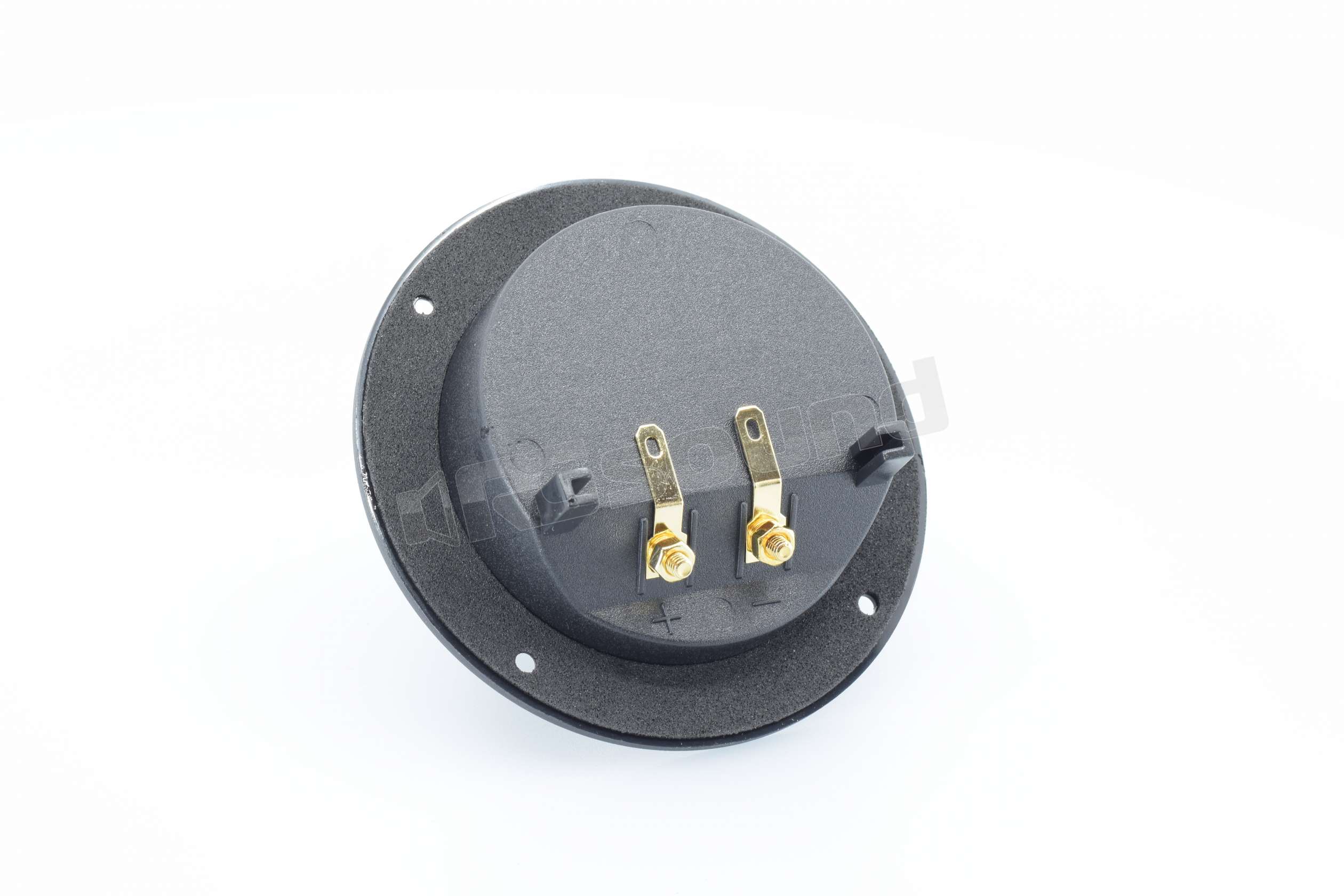 Ciare YAC 006 vaschetta rotonda ø 105mm in ABS nera con 2 terminali in metallo placcati oro.