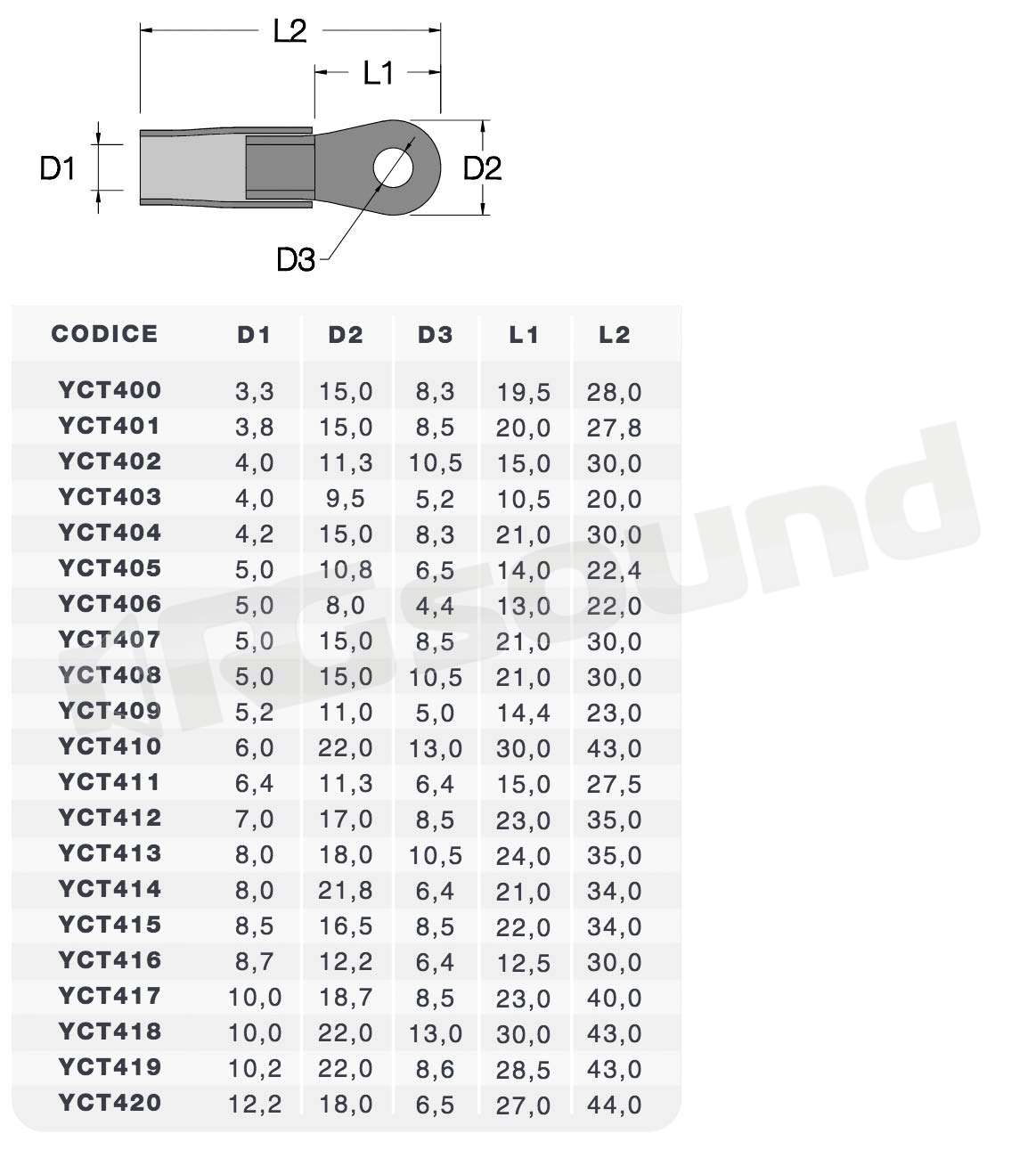 Ciare YCT411 coppia di terminali ad occhiello isolati, con finitura dorata.