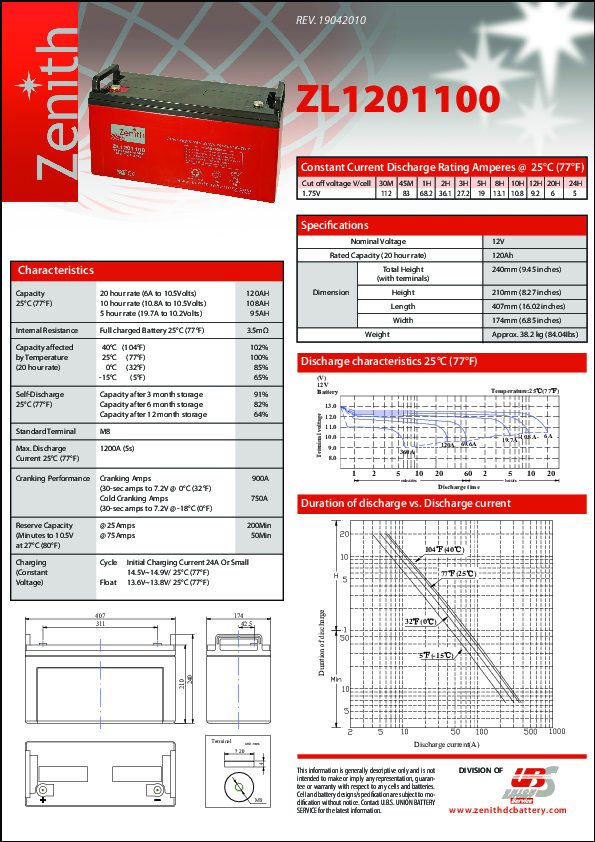 Zenith ZL1201100 batteria sigillata AGM 12v 120h per uso ciclico (carica-scarica) ideale per trazione elettrica in genere: veicoli elettrici, piattaforme aeree, transpallet, muletti, golf car, lavapavimenti, veicoli per invalidi, pannelli solari.